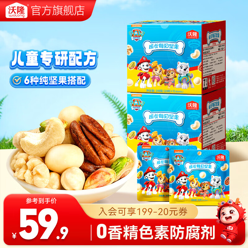 旗舰店沃隆每日坚果炒货苹果干山楂开胃核桃腰果开心果儿童零食无添加大礼包 140g/盒*2儿童无添加纯坚果