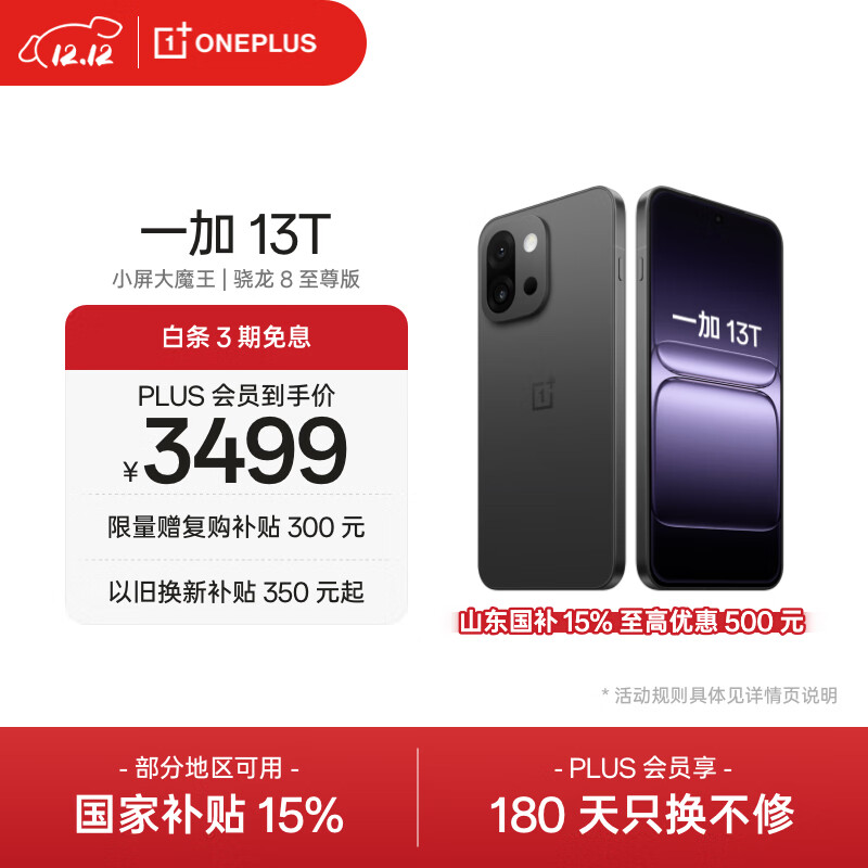 自营一加 13T 12GB+256GB 云墨黑 oppo 性能超强小直屏 骁龙 8 至尊版 冰川电池 AI 5G游戏拍照智能手机