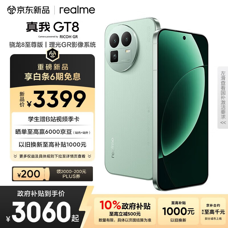 自营realme真我GT8 骁龙8至尊版 电竞独显芯片 2K 144Hz高刷直屏 5000万潜望长焦 电竞游戏学生手机12+512绿