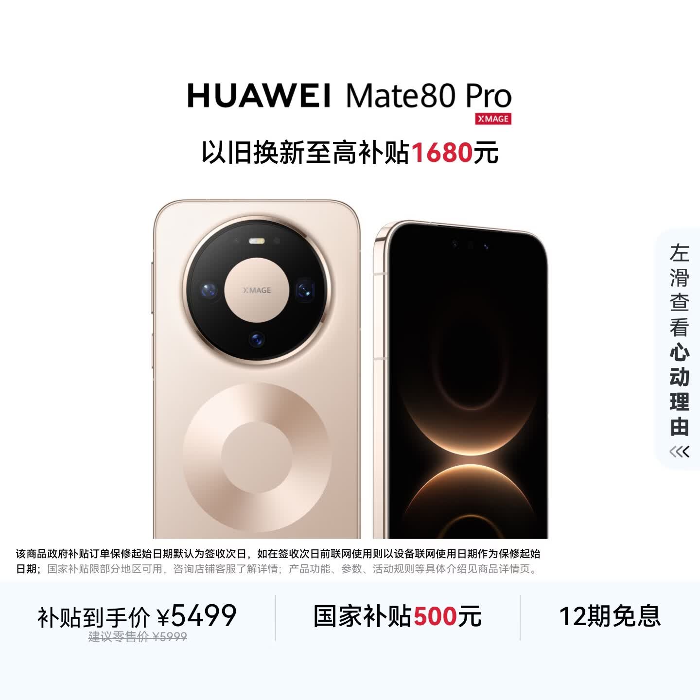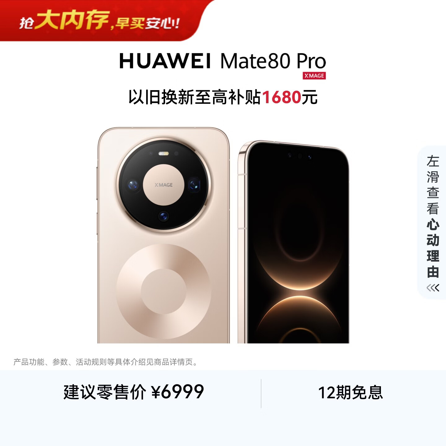 自营HUAWEI Mate 80 Pro 麒麟9030 12GB+256GB晨曦金 第二代红枫影像 鸿蒙AI 户外探索模式 鸿蒙系统华为手机