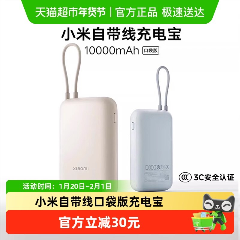 【3C认证】小米自带线充电宝10000 22.5w口袋版快充超薄便携