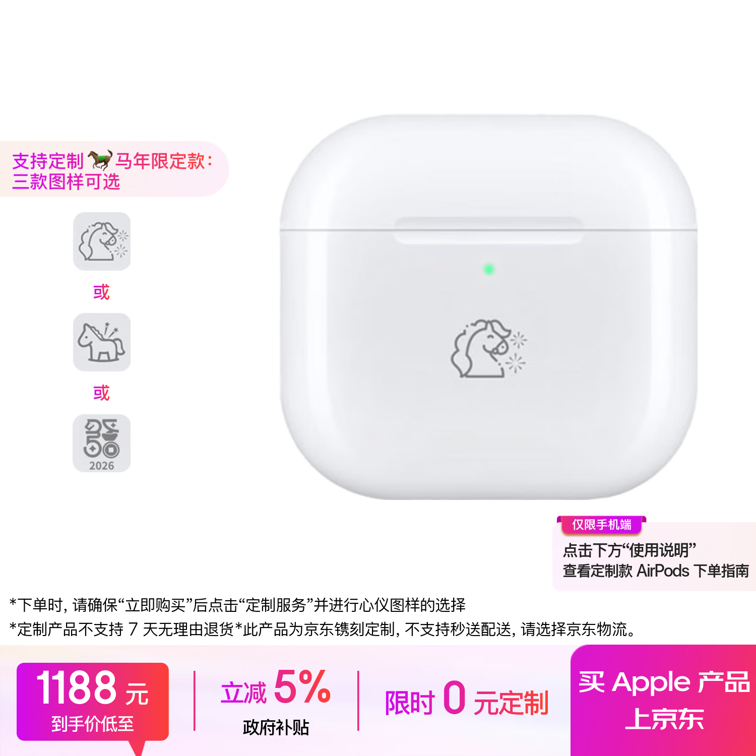 自营Apple/苹果 AirPods 4(支持主动降噪) 图文定制版(支持定制马年新春限定款)