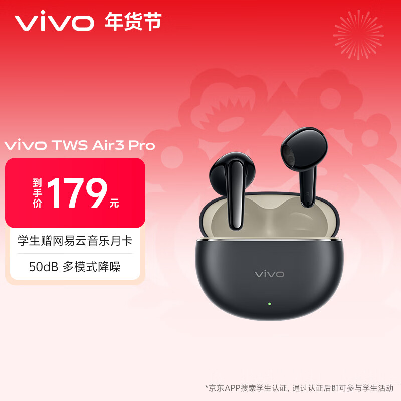 自营vivo TWS Air3 Pro 星河黑 50dB多模式降噪 适配苹果华为小米 蓝牙耳机 S50搭配耳机