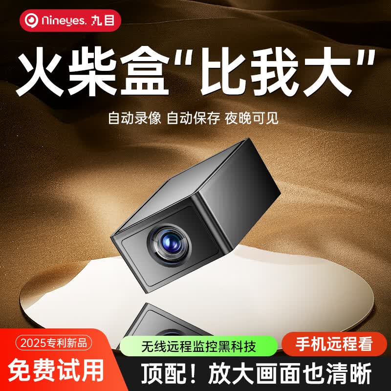 旗舰店九目无线高清监控摄像头家用免插电手机远程高清夜视自动录像回放火柴盒猫眼监控 火柴盒高清WIFI镜头升级版 +128G循环专用卡 2025全新升级镜头新品