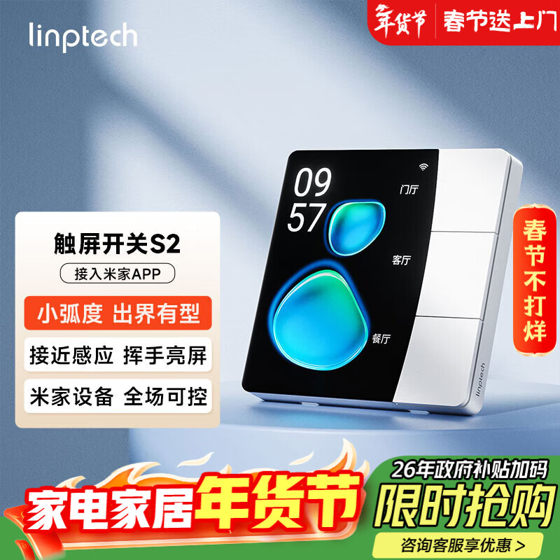 旗舰店领普星环触屏开关S2智能家庭面板触屏按键语音声控智能联动 触屏开关S2星光白 三键