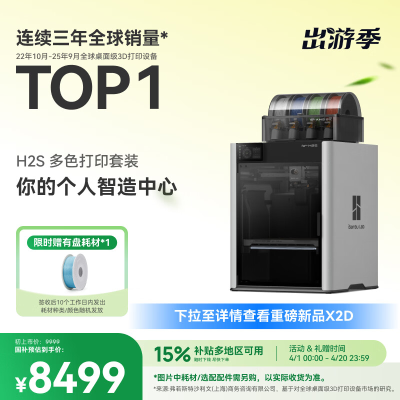 旗舰店拓竹H2S 3D打印机器大尺寸激光雕刻模切画笔多功能四合一高精度高速智能多色家用旗舰系列新品 H2S 多色打印套装【大陆版】
