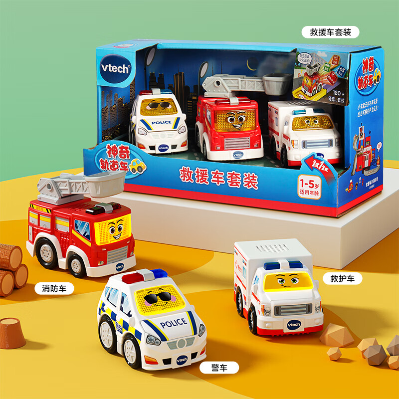 自营伟易达(Vtech)神奇轨道车 救援车套装 声光音乐小车儿童玩具车男孩女孩生日礼物