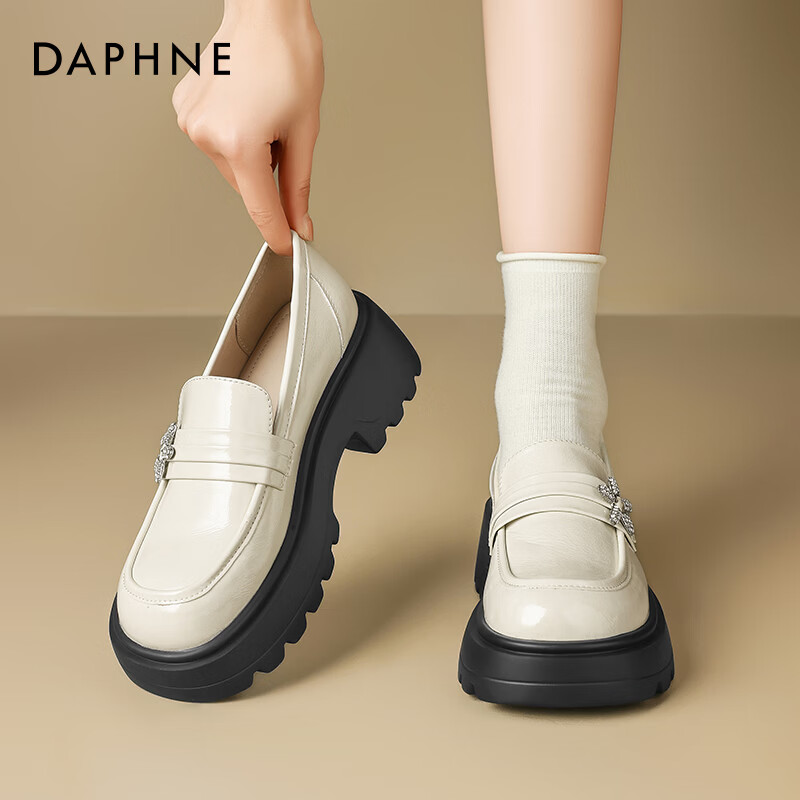 达芙妮黑色复古乐福鞋女2025年春季新款通勤一脚蹬爆款轻便小皮鞋 米色 37
