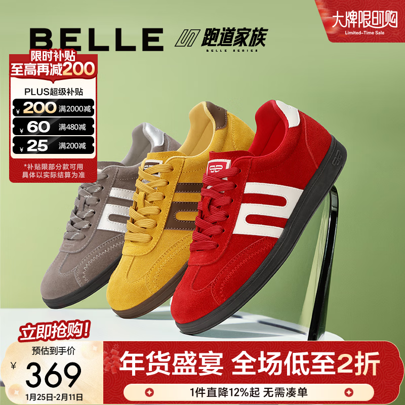 旗舰店百丽(Belle)学院风跑道赛车鞋德训鞋女款商场款薄底板鞋E2K1DCM5 红色 37 (235mm)