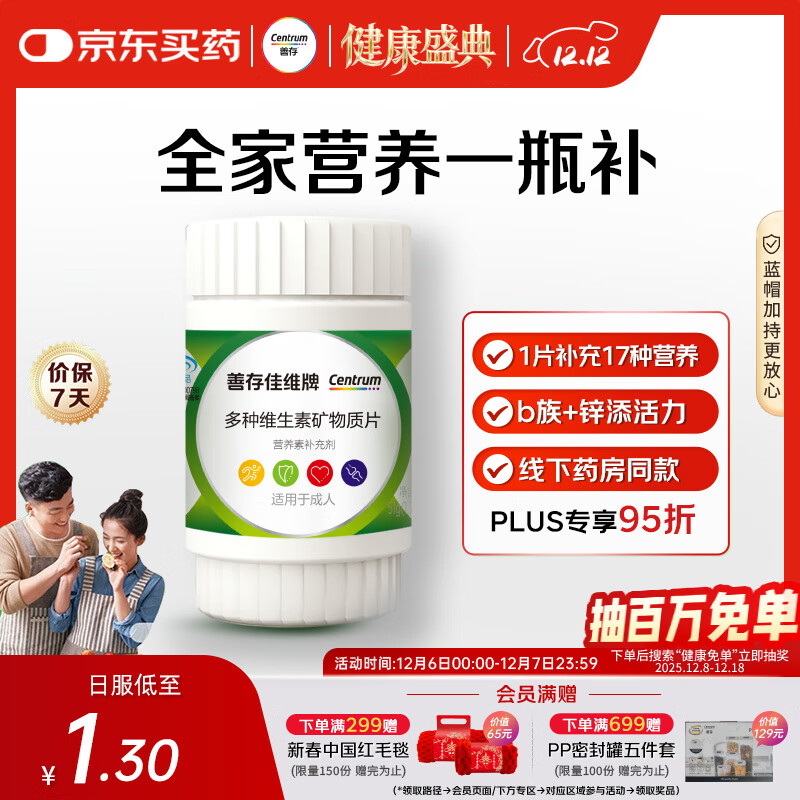 自营善存男女中老年佳维复合维生素 B族B12维CED3钙锌铁叶酸烟酰胺 30片