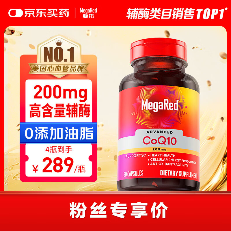 自营MegaRed脉拓辅酶q10胶囊高含量美国原装进口护养心脏心肌coq10 200mg30粒