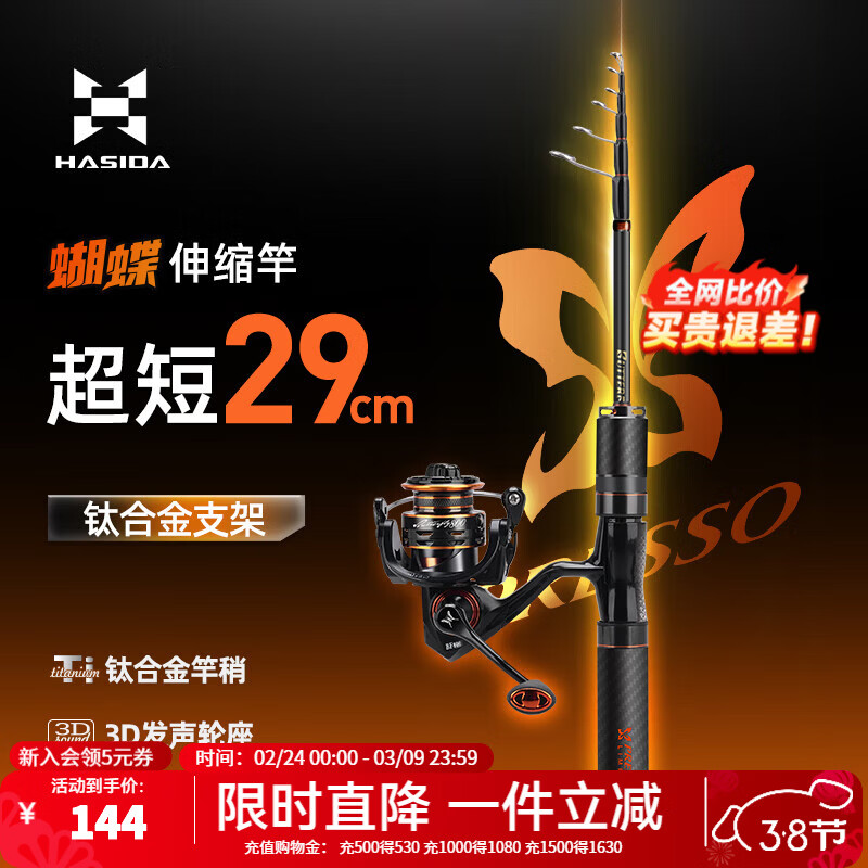 哈斯达钓鱼竿蝴蝶伸缩路亚竿29cm超迷你短节便携钛合金竿稍UL微物竿鱼竿 1.5米 UL直柄单竿 【钛合金支架】