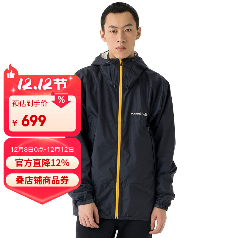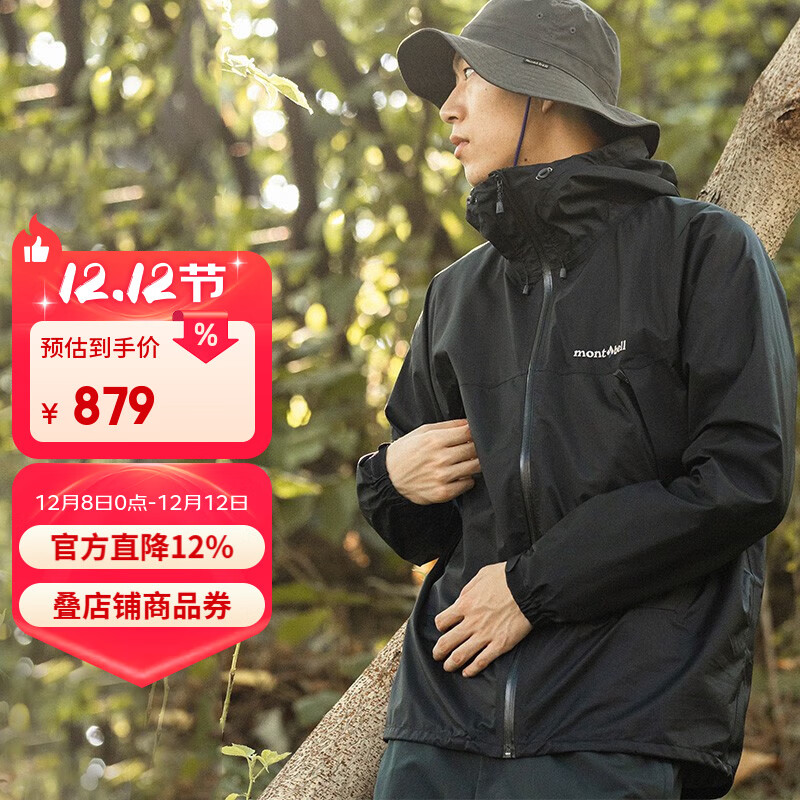 旗舰店mont·bell雷系列冲锋衣男款户外徒步登山防风防水单层硬壳夹克外套 1128635 黑色BK L