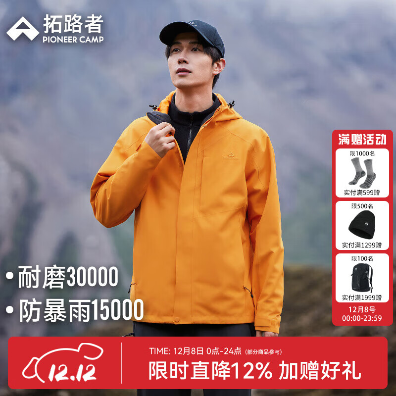旗舰店拓路者(Pioneer Camp)户外冲锋衣男秋季新款防风防水保暖运动外套旅行爬山硬壳登山服 日光橙 M