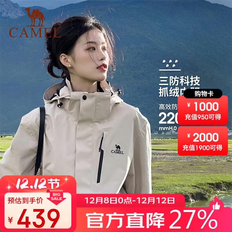 自营骆驼(CAMEL)三防冲锋衣男女三合一外套户外防风防水进藏旅游徒步登山服装