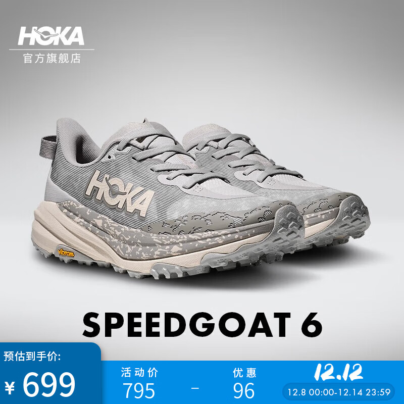 旗舰店HOKA男女款冬季飞速羚羊 6越野跑步鞋SPEEDGOAT 6轻量抓地缓震 宇宙灰/石膏白-女 38