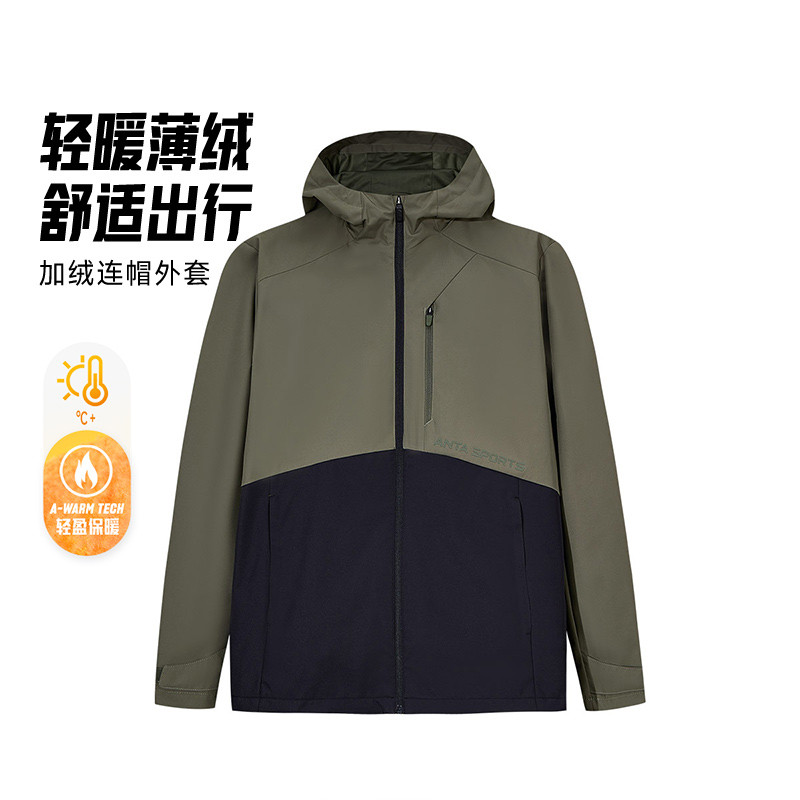 【轻暖绒】男式加绒运动夹克外套安踏秋冬连帽风衣运动上衣