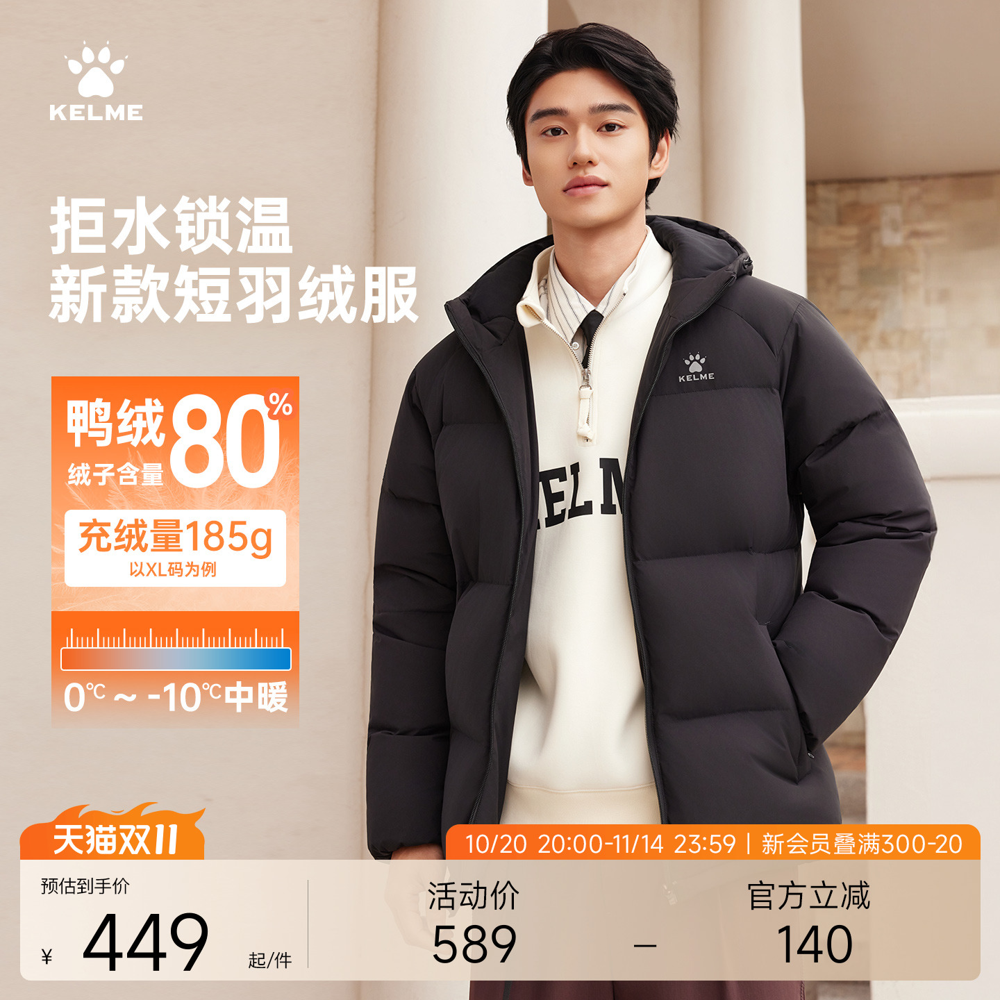 旗舰店KELME卡尔美羽绒服男士冬季新款防泼水加厚短款连帽保暖运动外套