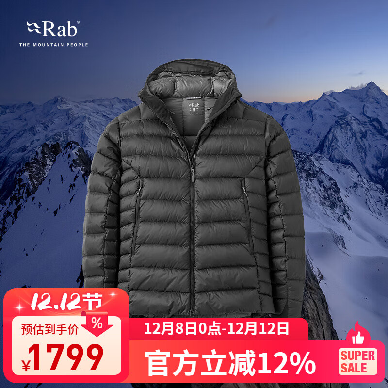 旗舰店Rab睿坡Electron Pro秋冬男士800蓬轻量保暖鹅绒连帽羽绒服 QDB-81 黑色 M