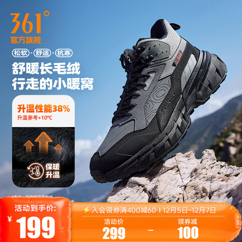 旗舰店361行山男户外运动鞋冬季新款高帮加绒保暖大棉鞋皮面防水登山鞋