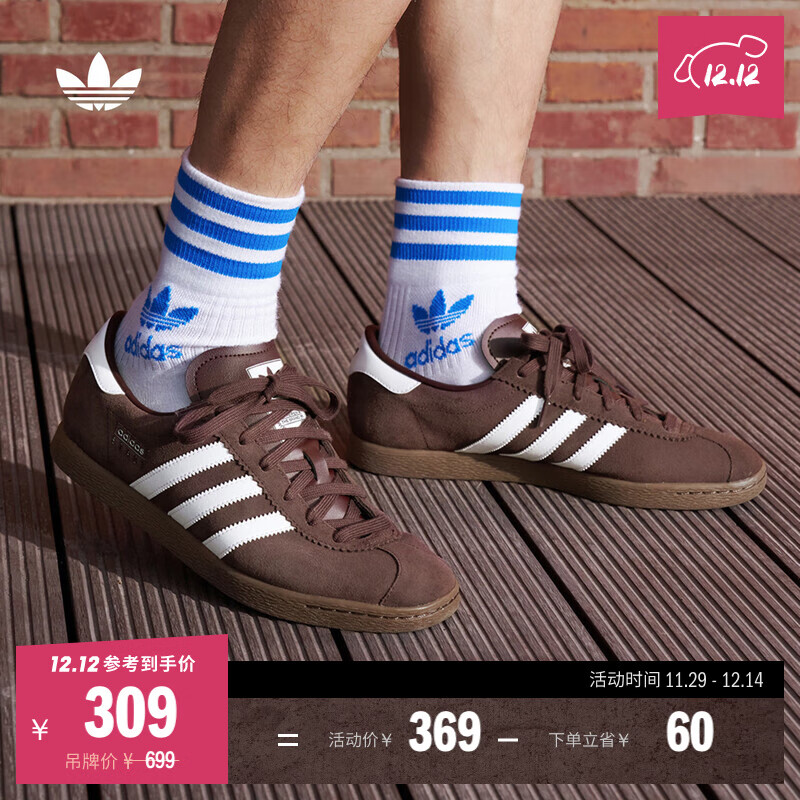 旗舰店adidas「T头鞋」STADT经典时尚薄底运动板鞋男女阿迪达斯三叶草 暗灰棕/白色/树脂黄 37