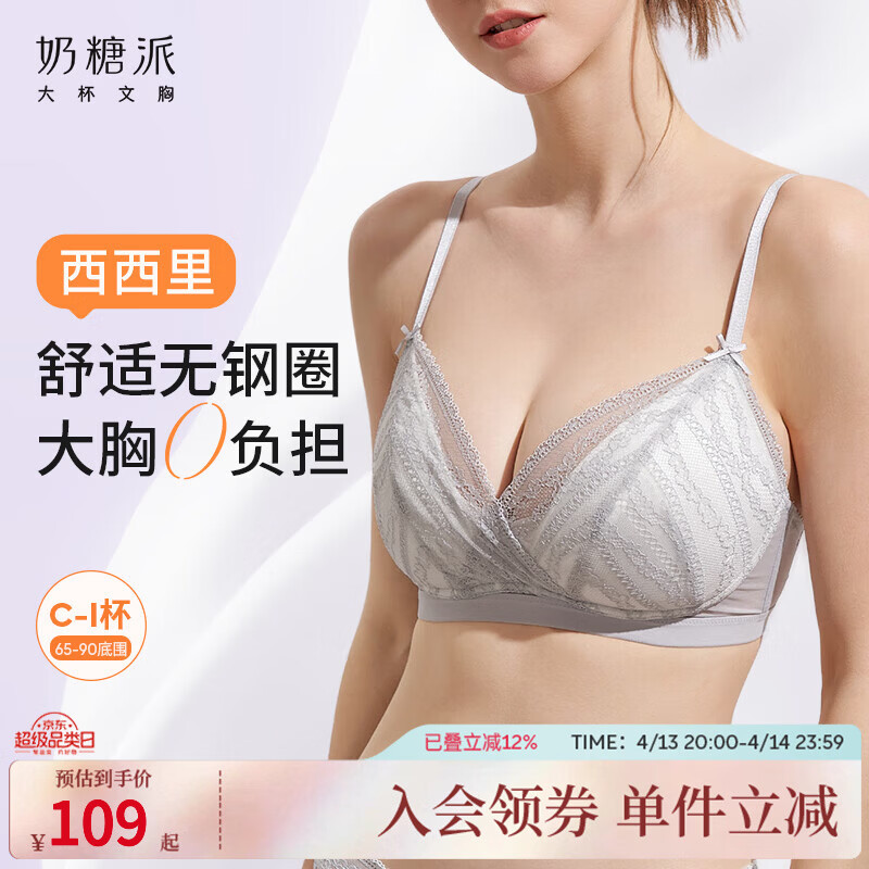 旗舰店奶糖派大胸文胸西西里法式三角杯薄款内衣大胸显小无钢圈防凸点送女友 月岩灰 M 1【75B-C,80A-B】