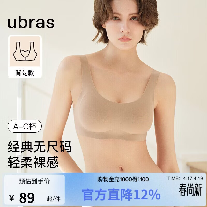 自营ubras无尺码内衣女无痕隐形抗菌无钢圈文胸罩隐形肤色常规版背勾款
