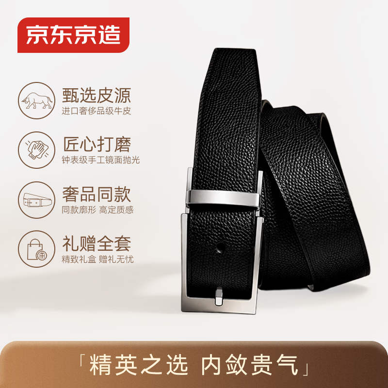 自营京东京造真牛皮腰带2026新款不锈钢针扣牛皮皮带男士皮带生日礼物110cm
