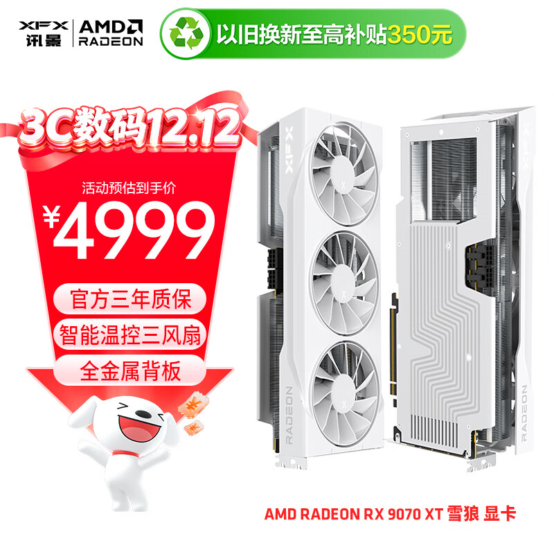 自营讯景(XFX)AMD RADEON RX 9070 XT 雪狼 16GB 白色 全新电竞游戏设计智能学习台式电脑独立显卡