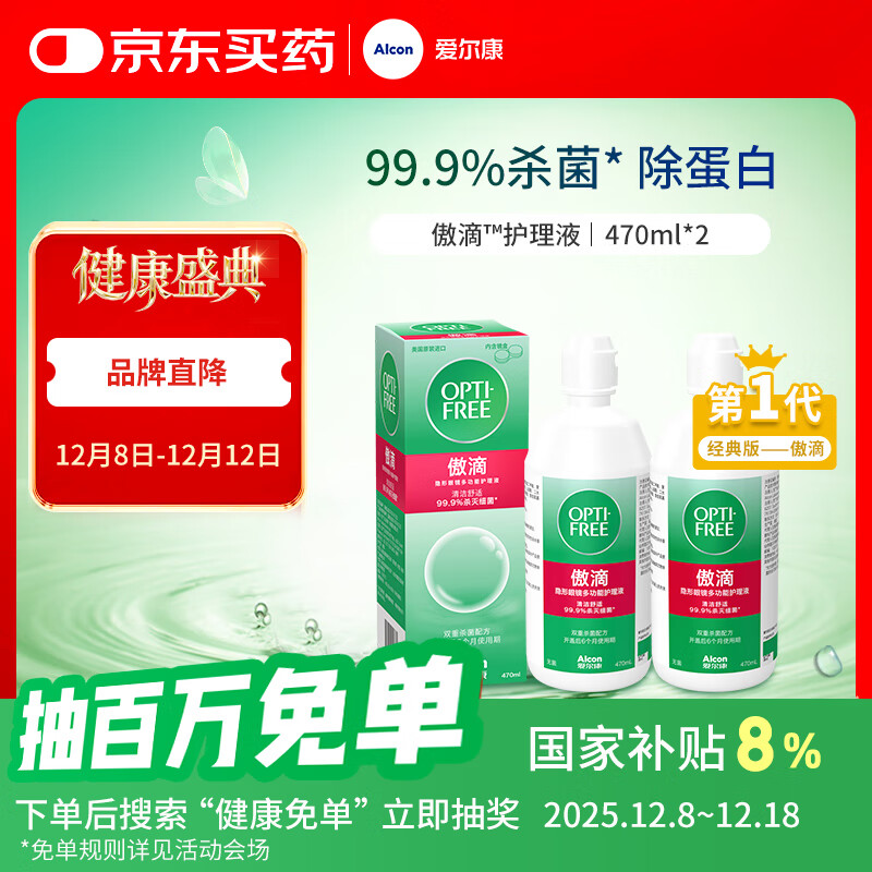 自营爱尔康 傲滴隐形眼镜液护理液美瞳护理液470ml*2 清洁杀菌除蛋白进口