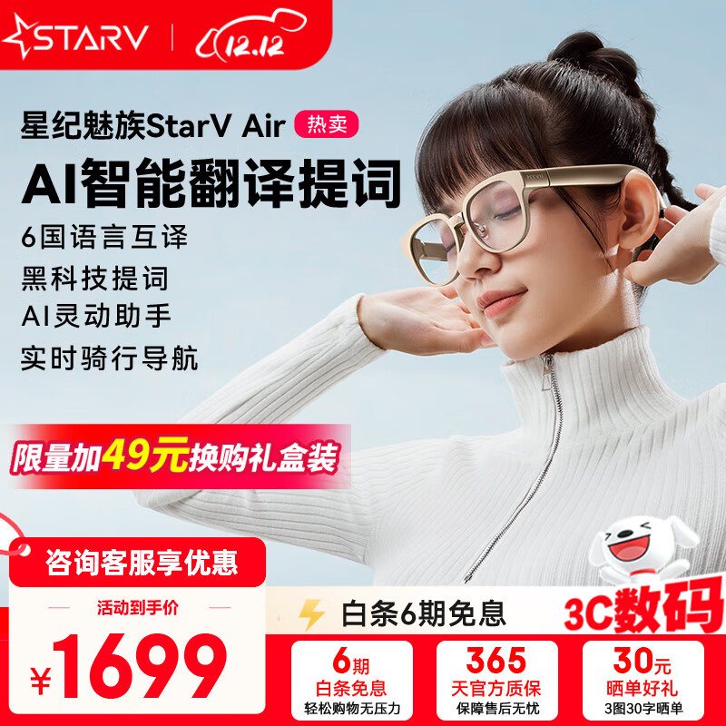 旗舰店STARV MYVU星纪魅族Air AR智能眼镜演讲提词器实时同声字幕翻译英法日俄语蓝牙音乐播放听障眼镜ai助手 耀目沙【实时翻译 演讲提词】