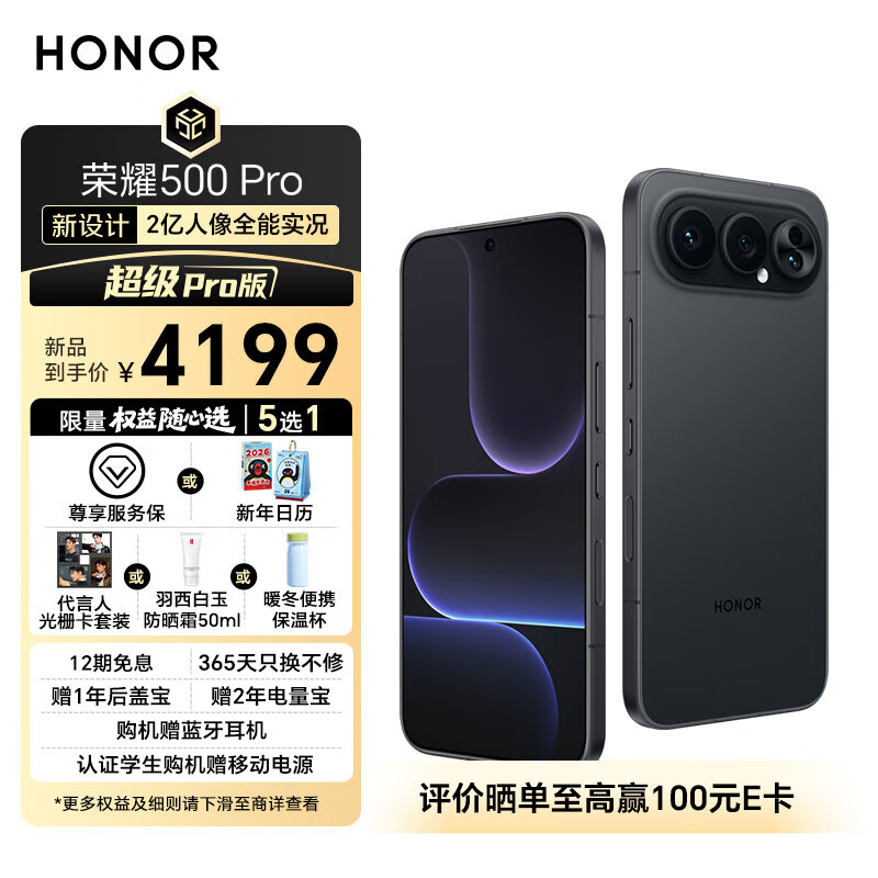 自营荣耀500 Pro 超级Pro版 肖战同款 骁龙8至尊旗舰芯 青海湖电池 5G AI 学生 新款拍照手机 16+512曜石黑