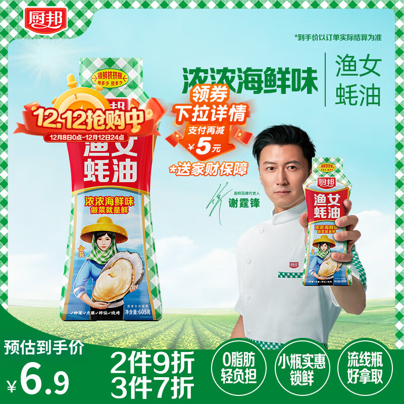 自营厨邦渔女蚝油 605g 【0脂肪】挤挤装 优质蚝汁 炒蘸拌烤提鲜调料自营