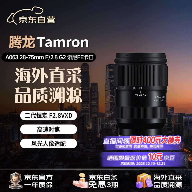 自营腾龙(Tamron)A063S 28-75mm F/2.8 Di III VXD G2二代索尼FE卡口 大光圈标准变焦镜头