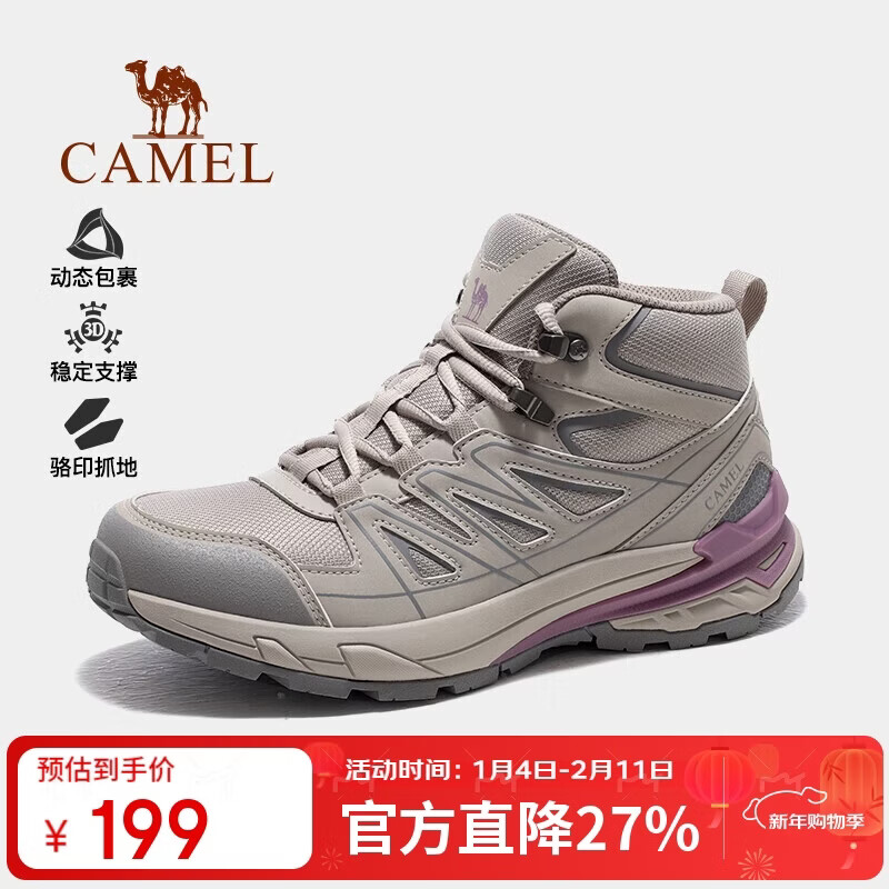 自营骆驼(CAMEL)登山鞋2024冬季新品户外徒步鞋男女防滑厚底高帮靴子 F24C097666