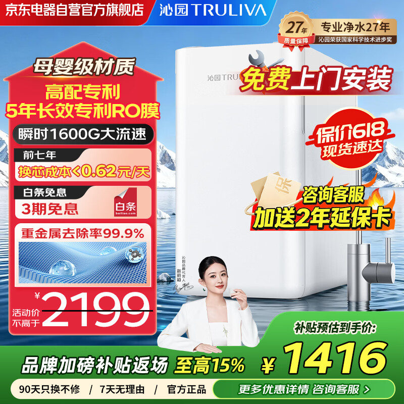 自营沁园净水器1600G双子芯初始流速星浩合可搭配管线机河5年长效RO反渗透直饮净饮机滤芯成本低UR-D3136