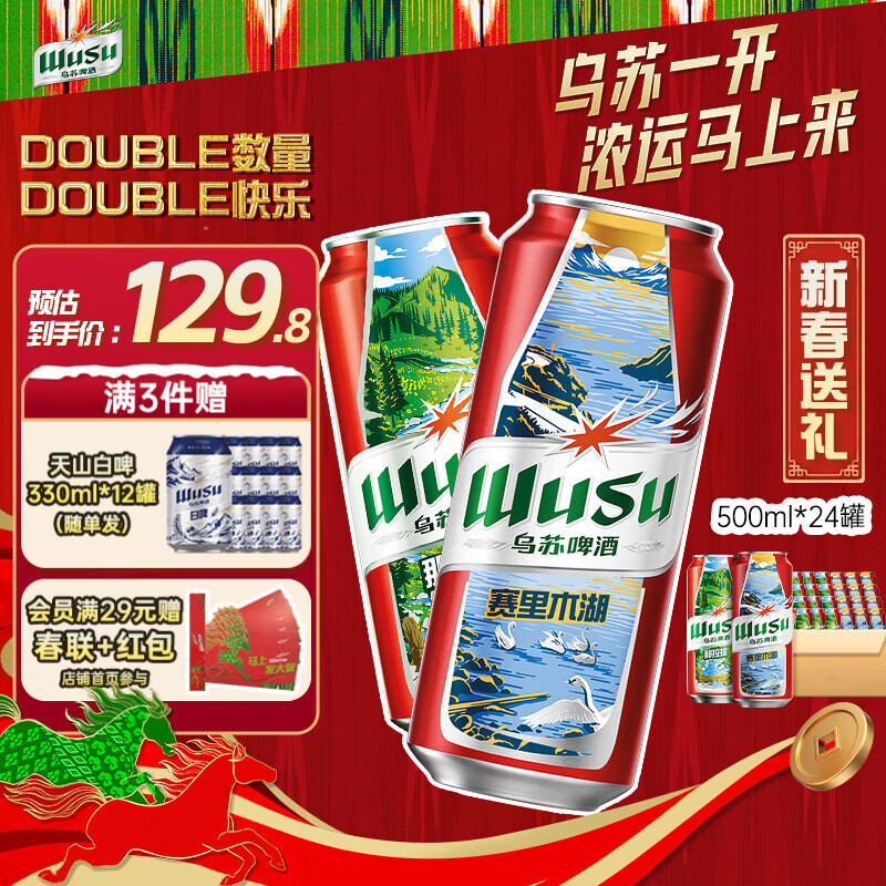 自营乌苏啤酒(wusu)京东自营大红乌苏啤酒500ml*24听整箱装非原箱热门商品