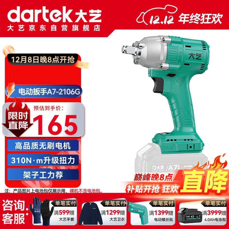 自营大艺电动扳手A7-2106G电扳手锂电无刷冲击风炮扳手京东自营旗舰店正品