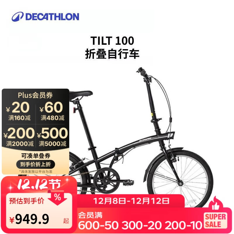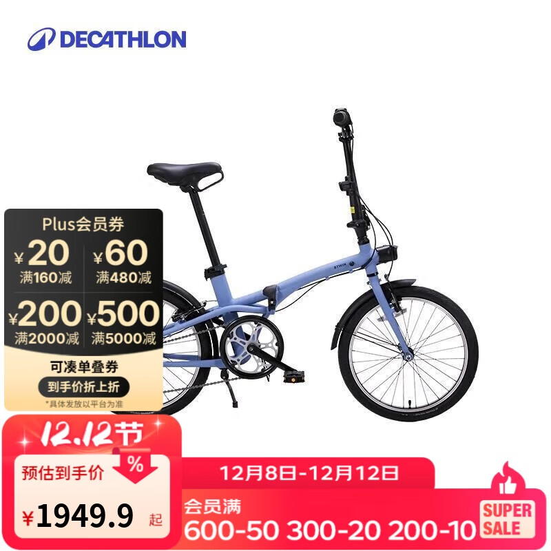 自营迪卡侬自行车T100折叠自行车折叠便携实用城市通勤单车20寸-2430961