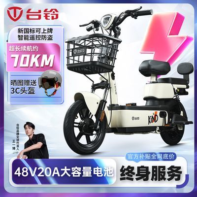 百亿补贴台铃电动车大麦48V20A新国标电动自行车长续航小型代步成人电瓶车