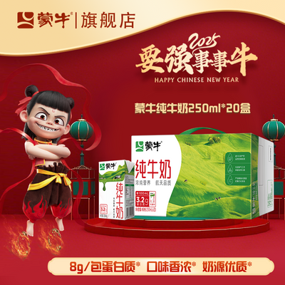 百亿补贴官方正品蒙牛纯牛奶250ml*20盒 早餐奶营养纯牛奶整箱囤货