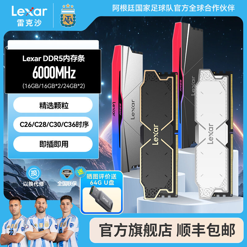 旗舰店lexar雷克沙16G内存条32G 48G套条DDR5 6000C28台式机内存RGB灯条