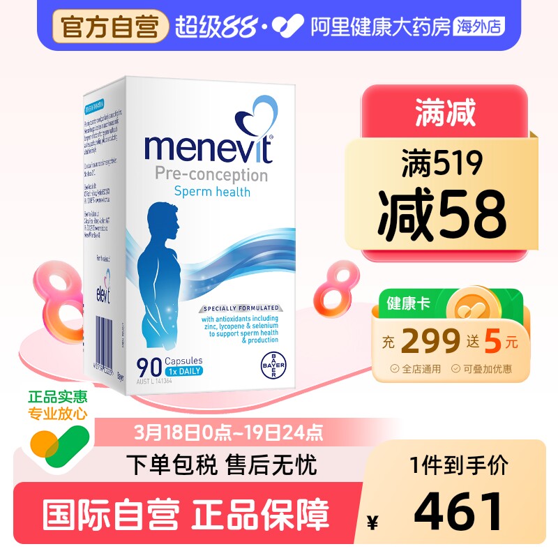 拜耳爱乐维Menevit男士叶酸复合维生素胶囊含维生素C含锌番茄红素