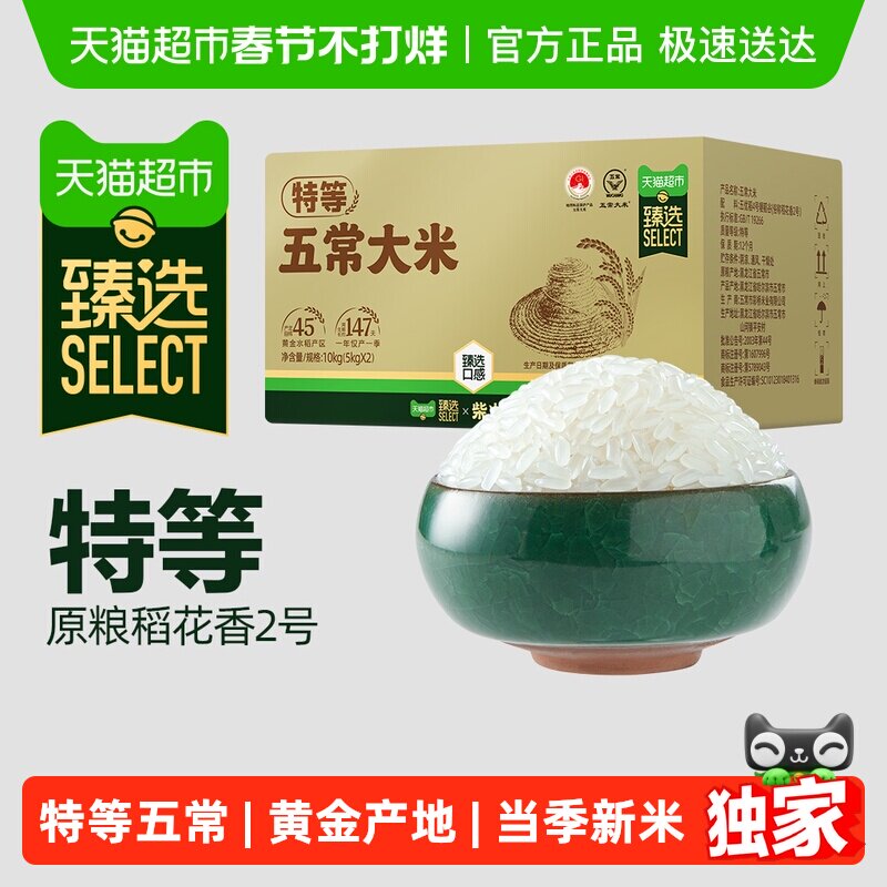 臻选柴火大院特等五常大米5kg*2原粮稻花香2号箱装送礼家用