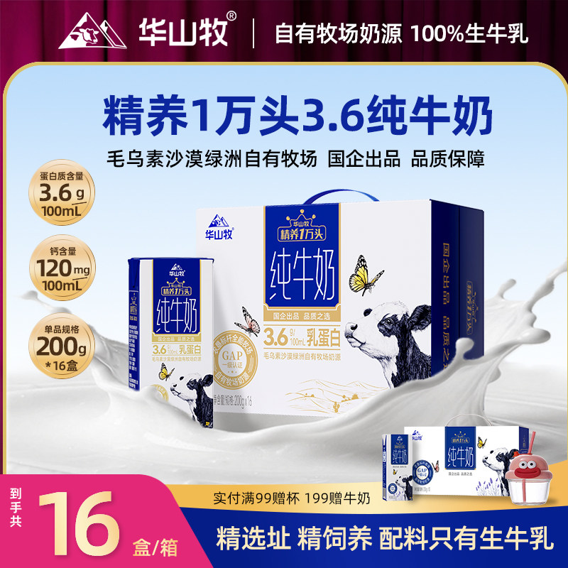 旗舰店华山牧精养3.6纯牛奶早餐奶营养整箱高钙奶学生牛奶常温奶