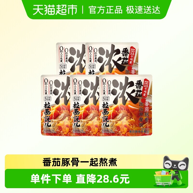 拉面说儿番茄豚骨浓汤早餐面170g*5袋方便速食孩子早餐懒人夜宵