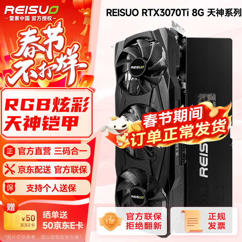 雷索 RTX3080 20G/3080Ti 12GOC全新GDDR6x光追黑神话三角洲游戏台式机电脑Ai模型训练跑图4K独立显卡 3070Ti 8G天神G6x版|RGB氛围灯