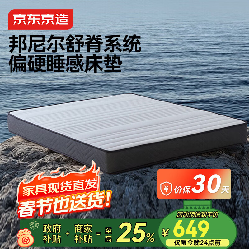 京东京造 家居弹簧床垫 黄麻棕邦尼尔弹簧 席梦思床垫1.5×1.9米