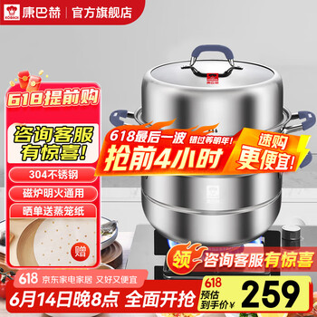 康巴赫(KBH)蒸锅304不锈钢蒸笼双层复合底汤煮锅燃气灶电磁炉通用【旗舰款】 【升级款】高盖 3层 32cm