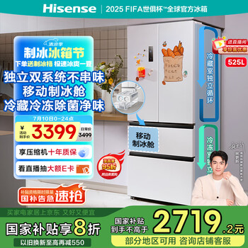 海信冰箱525L双系统法式多门四开门制冰冰箱一级能效无霜家电国家补贴20%以旧换新BCD-525WNK1PU白